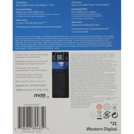 SSD накопитель WD Blue SN5000 500ГБ, M.2 2280, PCIe 4.0 x4, NVMe, M.2 [wds500g4b0e]