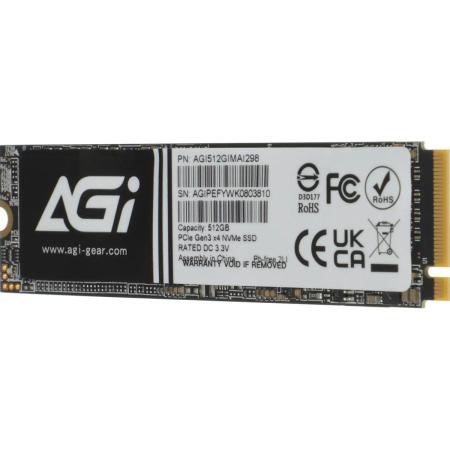 SSD накопитель AGI AI298 AGI512GIMAI298-CB 512ГБ, M.2 2280, PCIe 3.0 x4, NVMe, M.2