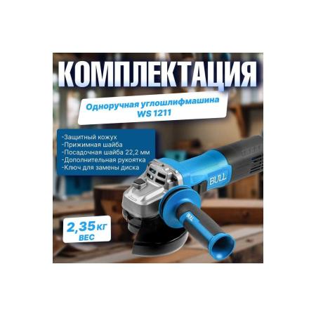 BULL Одноручная углошлифмашина WS 1211 в кор. 125 мм, 1000 Вт, плав. пуск., рег. об, конст. эл. 1333512