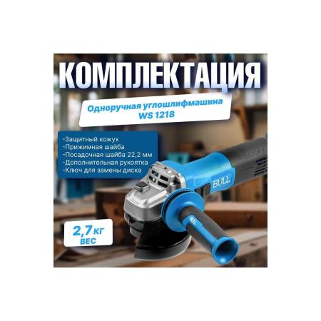 BULL Одноручная углошлифмашина WS 1218 в кор. 125 мм, 1800 Вт, плав. пуск., конст. эл. 1333515