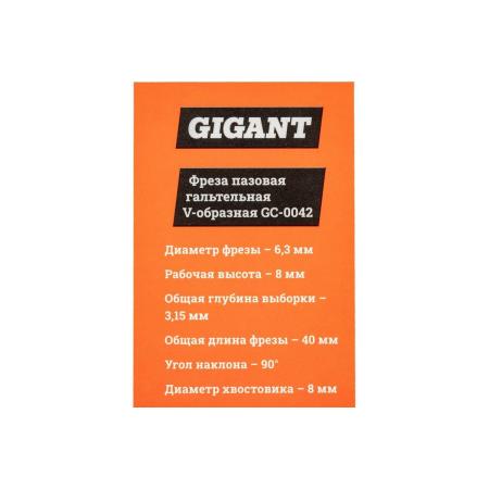 Gigant Фреза пазовая галтельная V-образная D6.3мм ?90 хвостовик 8мм GC-0042