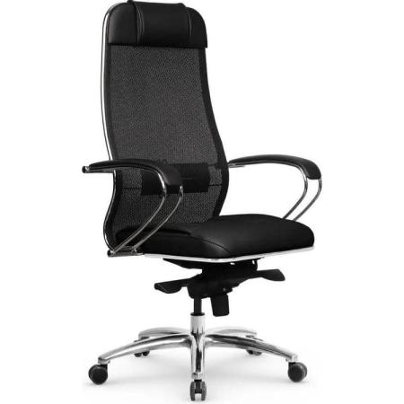 Кресло МЕТТА SL-1.04 Infinity Easy Clean, сетка/экокожа, до 120кг, синхромеханизм, фиксированные подлокотники, черный плюс/черный