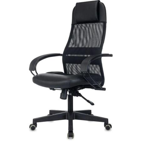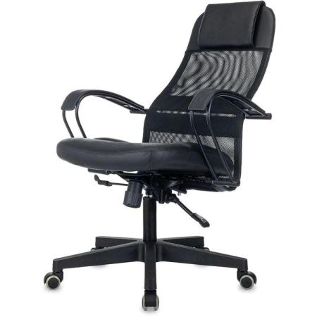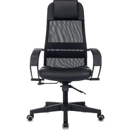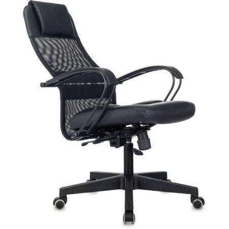 Кресло Бюрократ CH-NOVA LUX, сетка/ткань/экокожа, до 150кг, топ-ган люкс, фиксированные подлокотники, черный