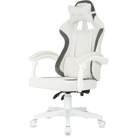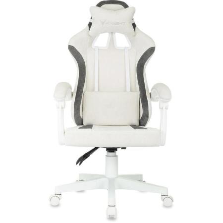Кресло игровое KNIGHT Wolf WH, ткань, до 120кг, шарнирные подлокотники, белый/серый
