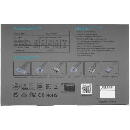 Блок питания Azza ATX 850W PSAZ-850G Gen.5 80+ gold (20+4pin) APFC 120mm fan 6xSATA Cab Manag RTL