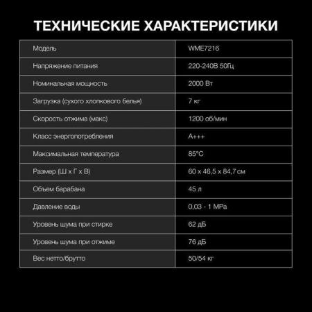 Стиральная машина Hyundai WME7216 класс: A+++ загр.фронтальная макс.:7кг белый инвертор
