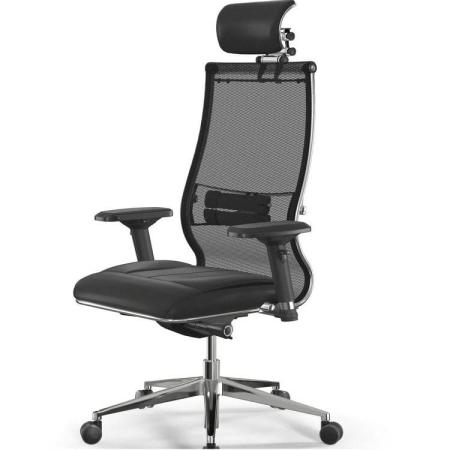 Кресло МЕТТА Samurai SL-3, сетка/экокожа, до 150кг, синхромеханизм, регулируемые 4D подлокотники, черный/черный