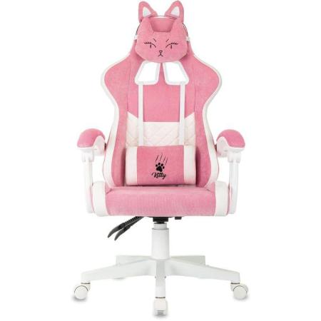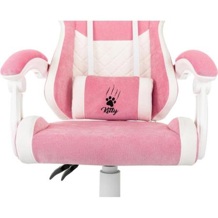 Кресло игровое KNIGHT Kitty W, ткань, до 120кг, механизм наклона спинки, шарнирные подлокотники, розовый/белый
