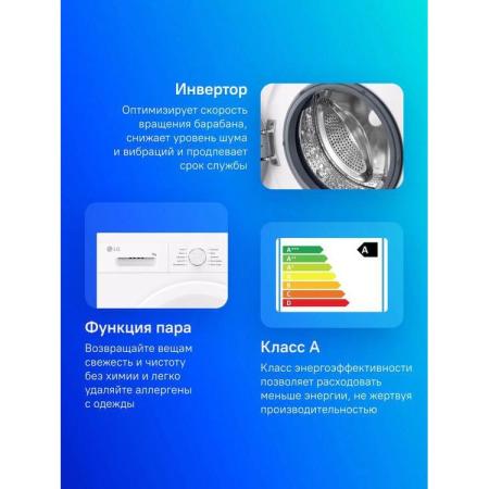 Стиральная машина LG F2Y1HS3W, с фронтальной загрузкой, 7кг, 1200об/мин, с паром, инверторная