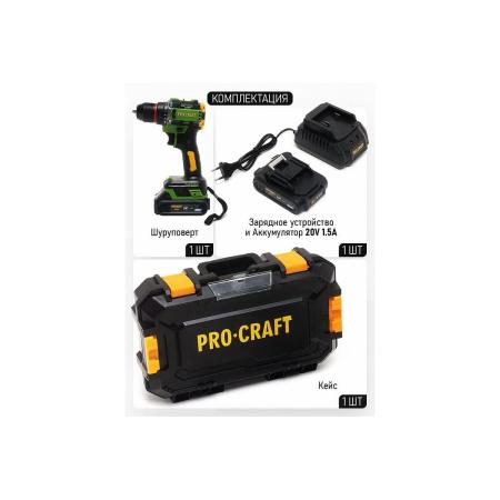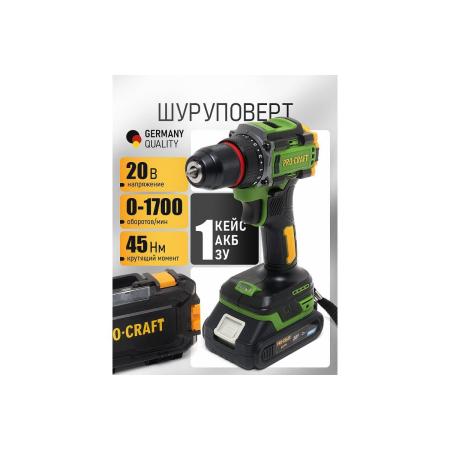 PROCRAFT Шуруповерт аккумуляторный 20В 45Нм (АКБ 1.5Ач+ЗУ+Кейс) PA18LiPro