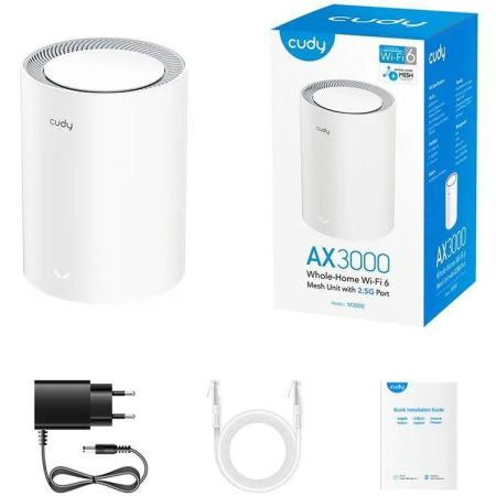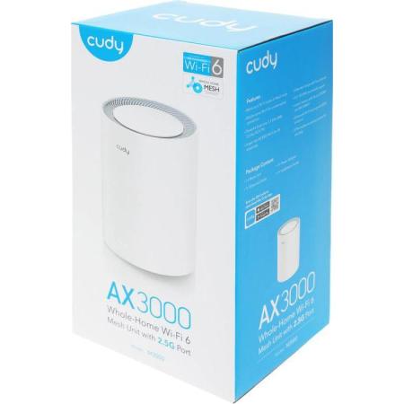 Бесшовный Mesh роутер CUDY M3000, Wi-Fi 6, AX3000, 2.4/5ГГц, 1 LAN, белый [m3000(1-pack) white]