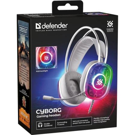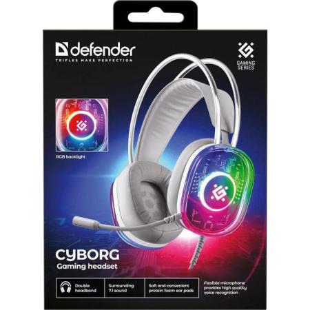Гарнитура игровая Defender Cyborg, для компьютера/мобильных устройств, накладные, проводные, белый [64575]