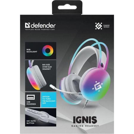 Гарнитура игровая Defender Ignis, для компьютера, накладные, проводные, белый [64440]