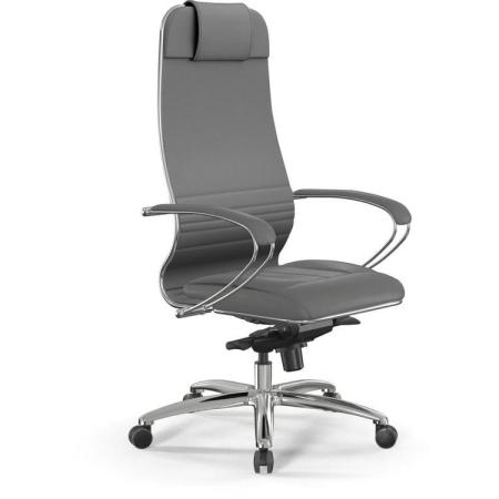 Кресло МЕТТА Samurai KL-1, экокожа, до 150кг, синхромеханизм, фиксированные подлокотники, серый/черный