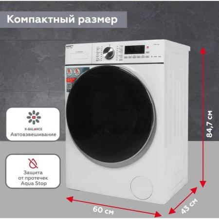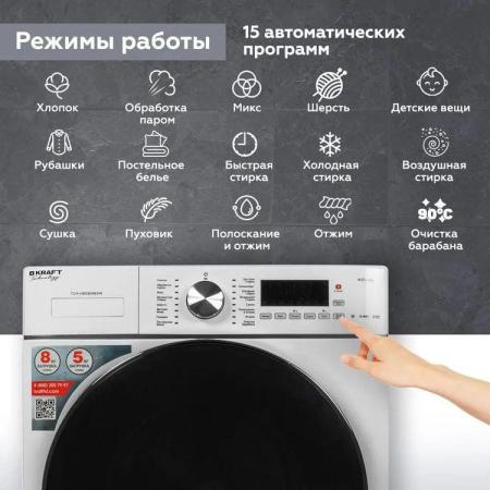 Стиральная машина KRAFT TCH-HDD8596SW, с фронтальной загрузкой, 8кг, 1400об/мин, с паром, с сушкой, инверторная