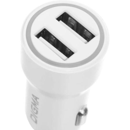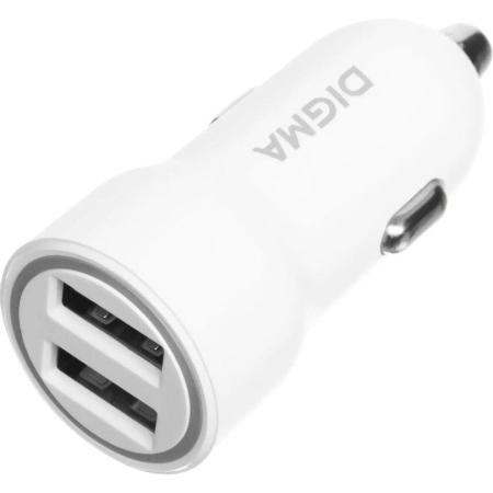Автомобильное зарядное устройство Digma DGC1С, 2xUSB-A, 12Вт, 2.4A, белый [dgc1c2lx22wh]