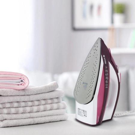 Утюг VITEK VT-1215 (PK) привлекает внимание большинства пользователей стильным эргономичным дизайном. Хотя, стоит заметить, внешний вид – не единственное его достоинство. Упомянутая модель представляет собой весьма мощное приспособление (2400 Вт), предоставляющее широкие функциональные возможности, а также отличающееся высокими рабочими показателями и надежностью. Среди базовых режимов: разбрызгивание, генератор пара, вертикальное отпаривание и паровой удар. Объемы выделения пара при работе в последнем из перечисленных режимов достигают 140 г/мин. Разработчики также позаботились о длительном сроке службы, которым отличается утюг VITEK VT-1215 (PK).