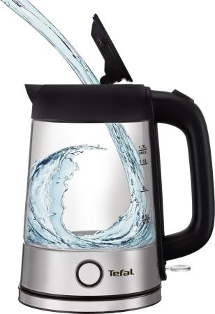 Чайник Tefal Glass Kettle KI750D 2400 Вт серебристый чёрный 1.7 л стекло