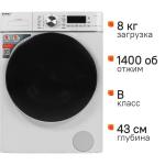 Стиральная машина KRAFT TCH-HDD8596SW, с фронтальной загрузкой, 8кг, 1400об/мин, с паром, с сушкой, инверторная